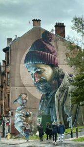 Then it’s on to the magnificent Kelvingrove Art Gallery and Museum, set in a grand red sandstone building by the park. Inside, you’ll find treasures from across the world — art, history, and oddities alike. Keep an eye out for Dali’s famous Christ of St John of the Cross, the life-sized elephant Sir Roger, and even a Spitfire hanging from the ceiling! There’s something to fascinate everyone here. Maybe if luck allows we may drive by the Bernie & Brian’s Mom’s Mom’s old street where they lived.